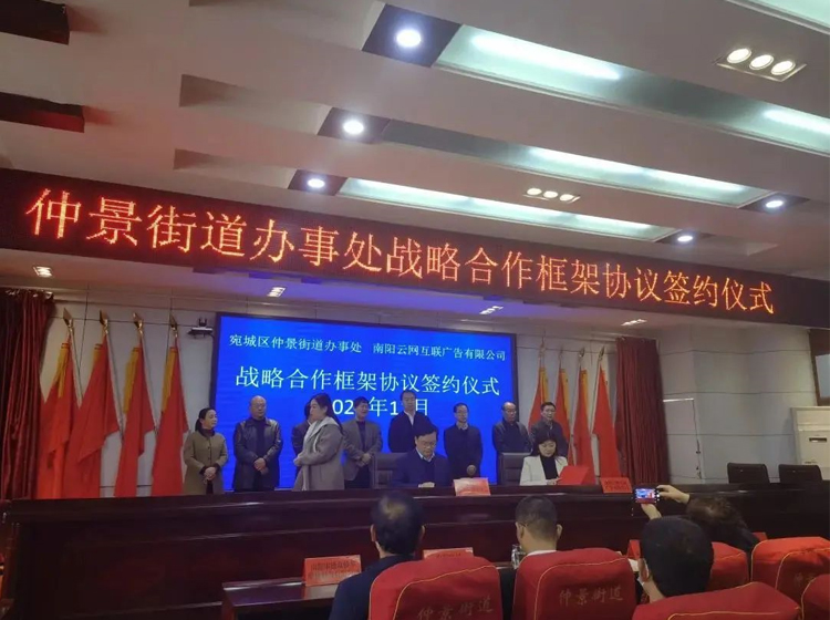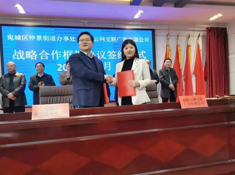 2021年11月21日,南陽市宛城區(qū)仲景街道辦事處與南陽云網(wǎng)互聯(lián)廣告有限公司戰(zhàn)略合作框架簽約儀式舉行!